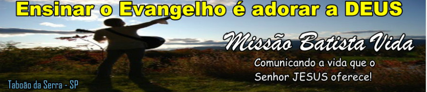 É com essa idéia central (submissão de nossas vidas ao senhorio de JESUS) que nós de Missão Batista Vida vivemos como igreja local, afinal o "Reino de DEUS não é comida nem bebida, mas justiça, e paz, e alegria no Espírito Santo" (Rom 14.17) e só é possível vivenciar isso se rendendo ao Seu senhorio e conhecendo Sua soberana vontade (conforme está revelada nas Sagradas Escrituras). Aqui esperamos não só divulgar o que o SENHOR tem feito através desta jovem igreja local, mas também providenciar alguns estudos e informações sobre vida cristã, a Bíblia e outros temas relacionados e tudo isso com o objetivo de auxiliar, de alguma forma, aos servos e servas do SENHOR a estarem melhor preparados para o ministério cristão e a permitir que outros possam vir a conhecer a maravilha que é ser um cristão.